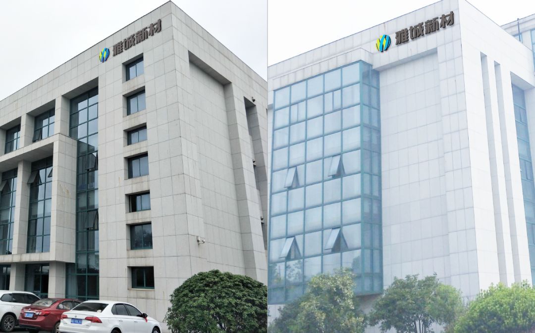 雅城自并入合纵科技上市公司这个大家庭以来,原有的企业外观与相对应的企业VI标识均不能适应企业发展壮大与对外宣传的要求,为此,公司委托专业广告公司将公司原有VI进行全新改版(融合上市公司商标文化),对企业大门、办公楼大厅与外墙、公司广场旗帜与喷泉等地方的企业文化标识进行更换与安装,此举受到来访重要客户的充分肯定与高度赞扬,提升了企业形象,增加了雅城新材品牌的附加值,提升了公司员工自豪感与荣誉感。